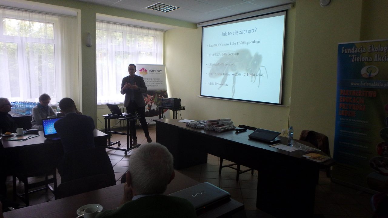Pierwsza prezentacja dotyczyła celów i działań Fundacji „Zielona Akcja„ w ramach realizowanego projektu „Pszczoły proszą o pomoc” oraz omówiono zasady uczestnictwa w nim. Dużym zainteresowaniem cieszył się projekt tworzenia stref nektarodajnych dla owadów zapylających. Uczestnicy zadawali wiele pytań oraz proponowali różne formy pomocy w realizacji projektu na terenie swojego województwa.